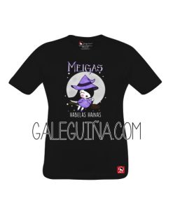 Fermosa camiseta de cor blanco o negra có deseño de Meigas, habelas hainas