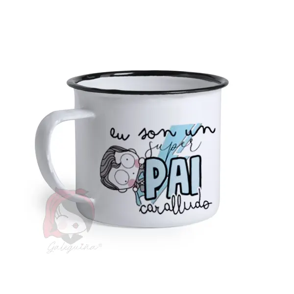 Cunca “Super Pai Caralludo” orixinal cunca de metal con deseño de Galeguiña : Eu son un Super Pai Caralludo.